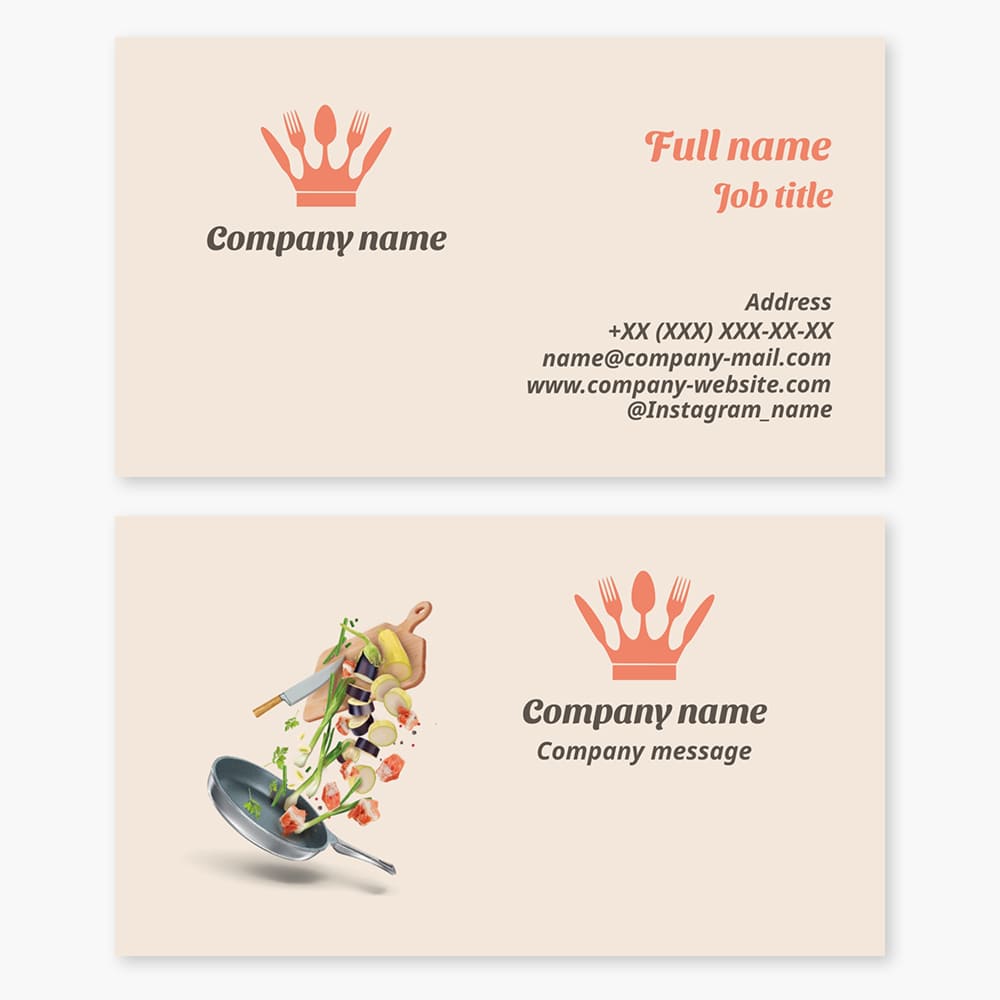 Business card template with the Royal Crown restaurant logo. Spoon, fork, and knife. Upscale restaurant.