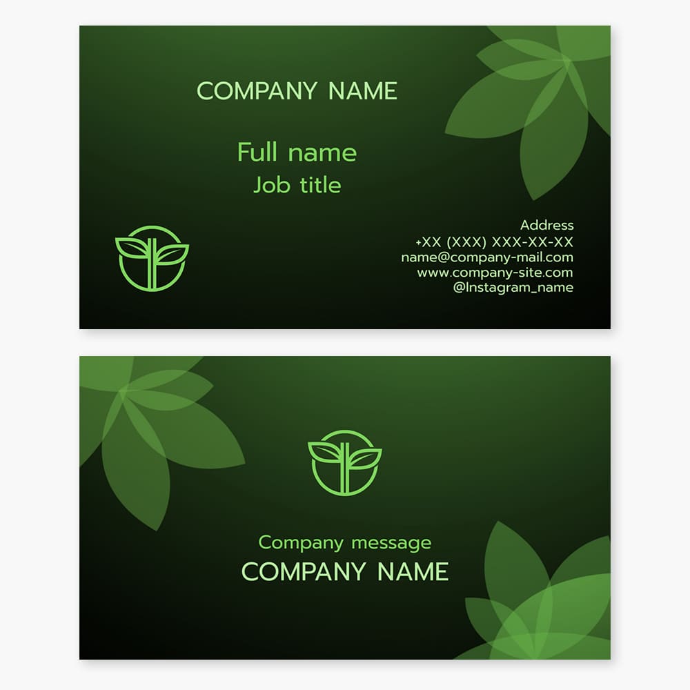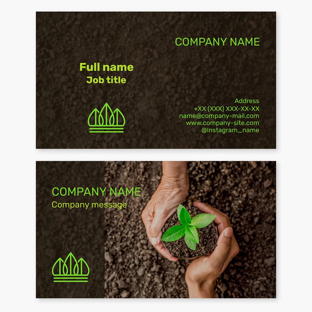 Business card template. Eco-friendly company. Growing and selling plants for home and office use.