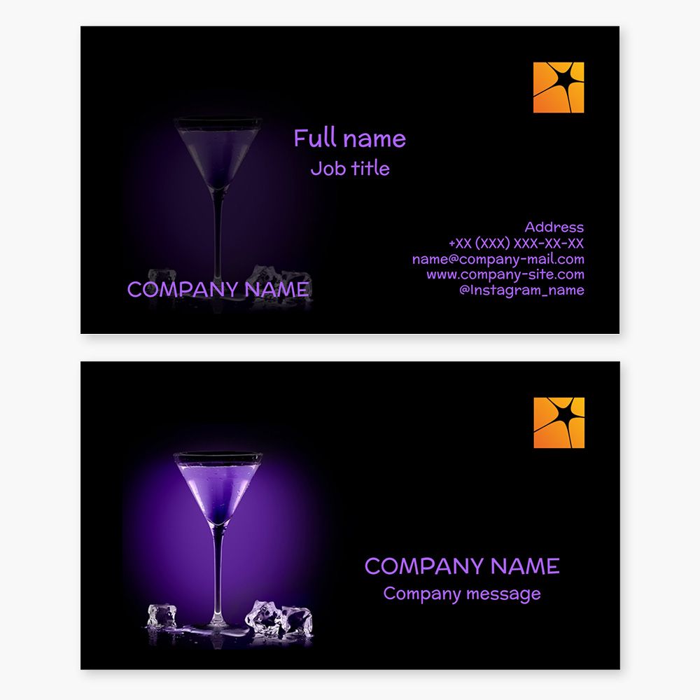 Cocktail and Alcohol Business Card Template. Bar.