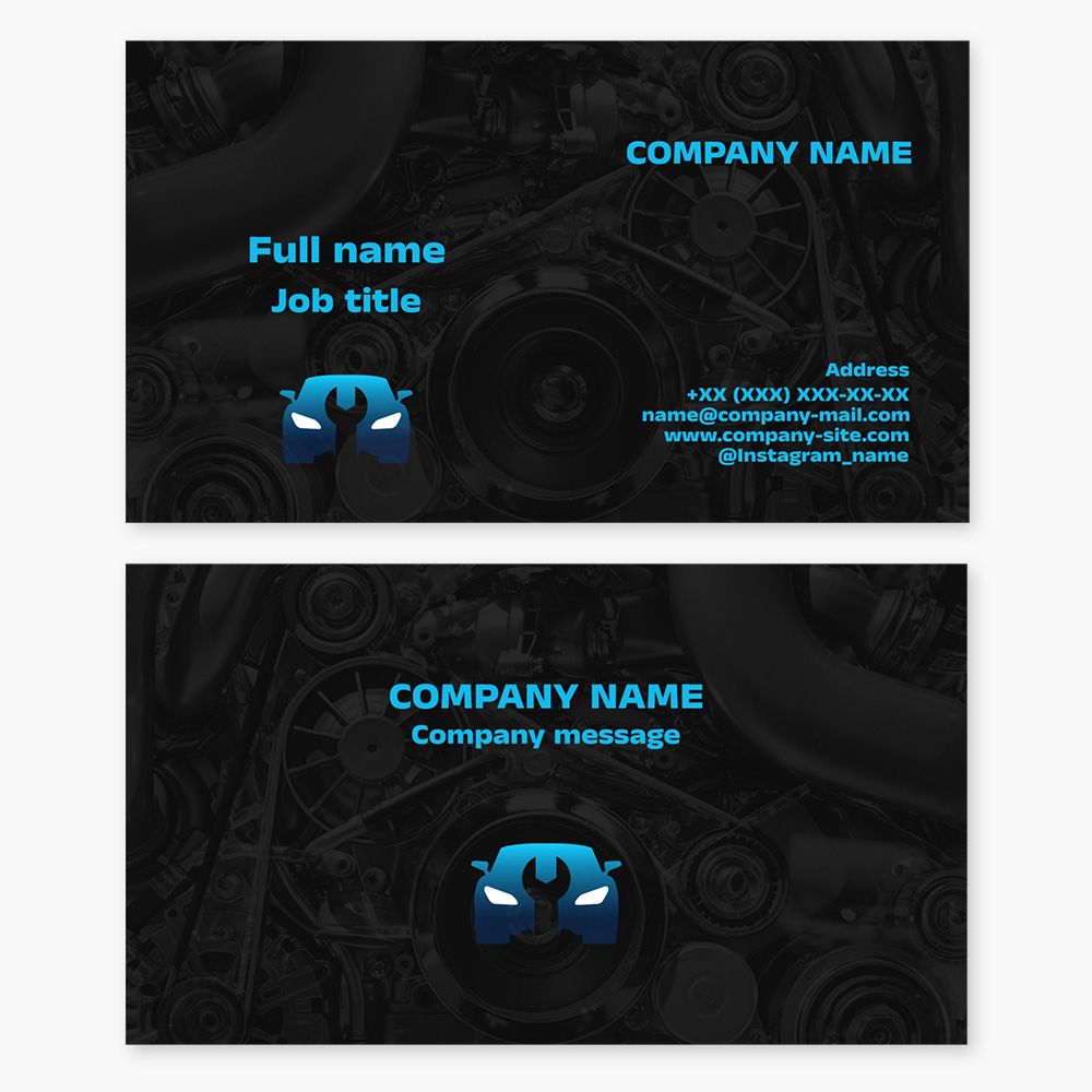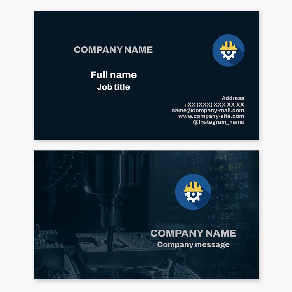 Business card template. Mechanical engineering company. Manufacturing and repair of equipment and machinery.