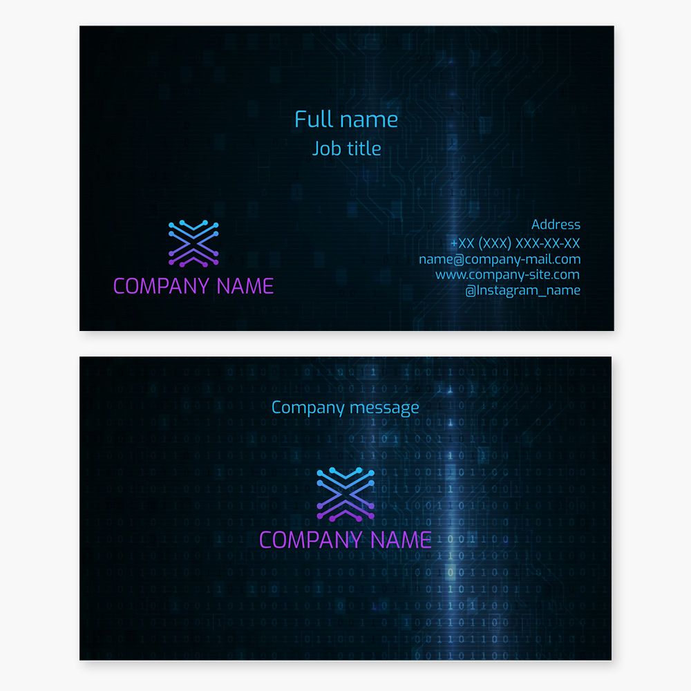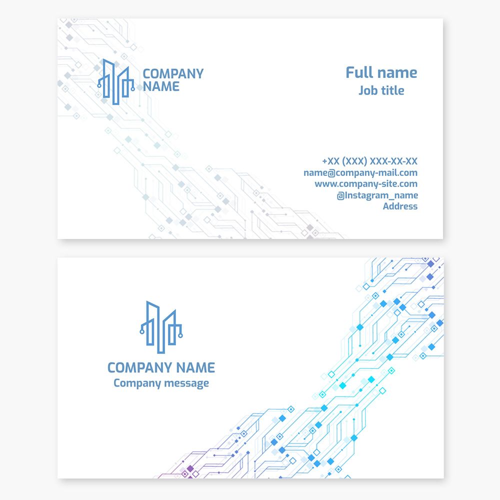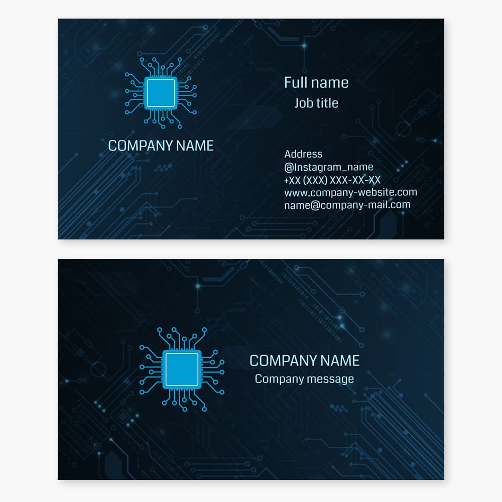 Business card template "Engineering Technology". Sale of electronic components. Design of microelectronics elements.