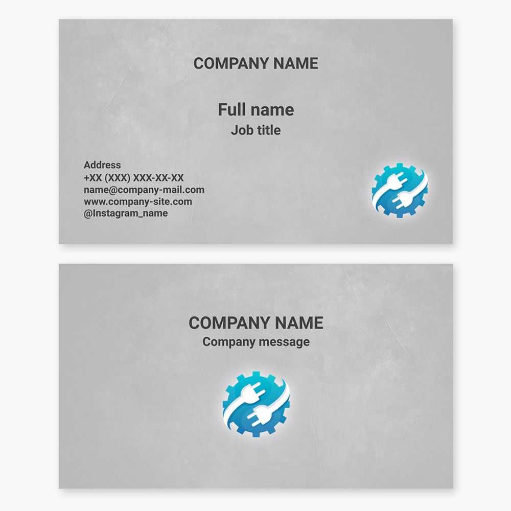 Two Electrical Plugs, Gears Logo | Electrical Engineer | Electrical Equipment Company | Business Card Template