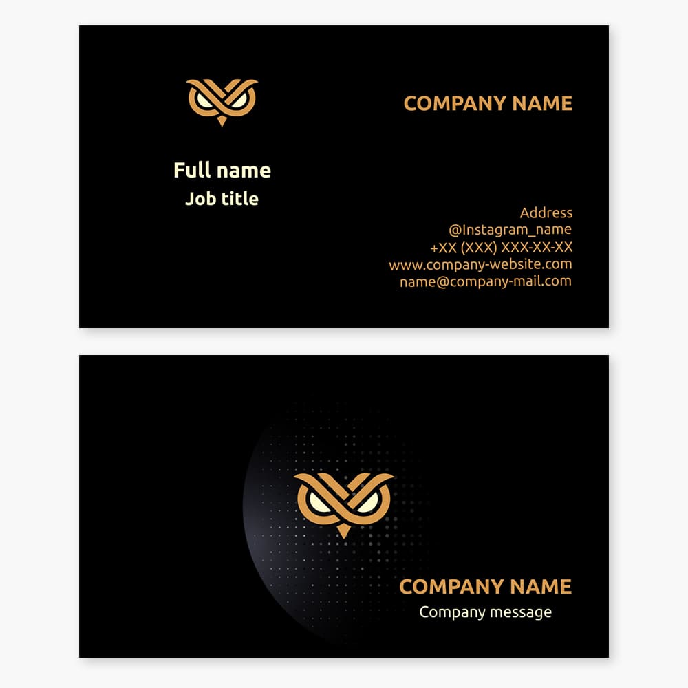 Business card template with Owl Face logo. Security, CCTV and protection.
