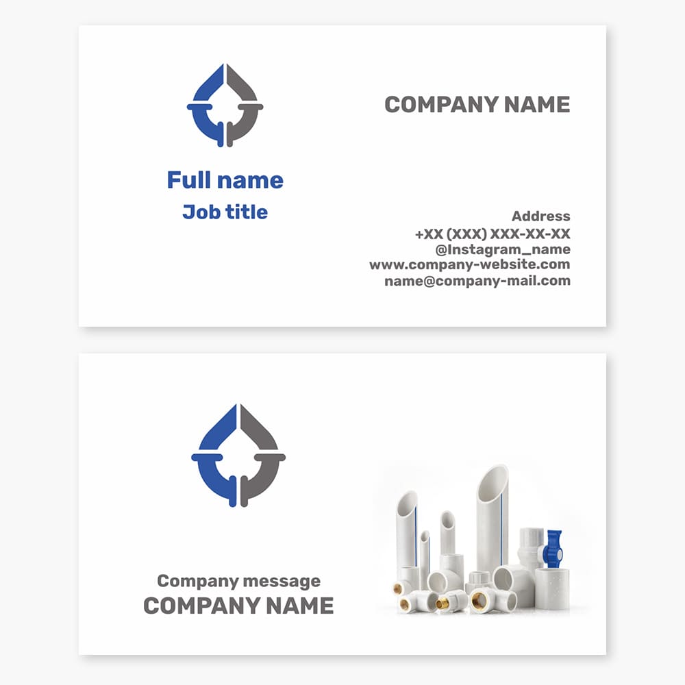 Business card template Accessories and materials for water supply and sewerage