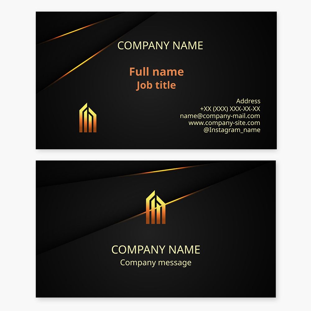 Construction worker business card template. Construction company. Hard hat, skyscrapers. Letter O.