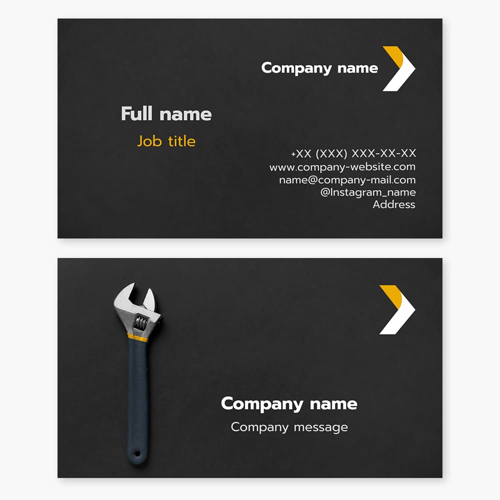 Business card template. Electrical equipment repair and installation workshop. Electrician. Electrical panel, lightning, electrical tools.