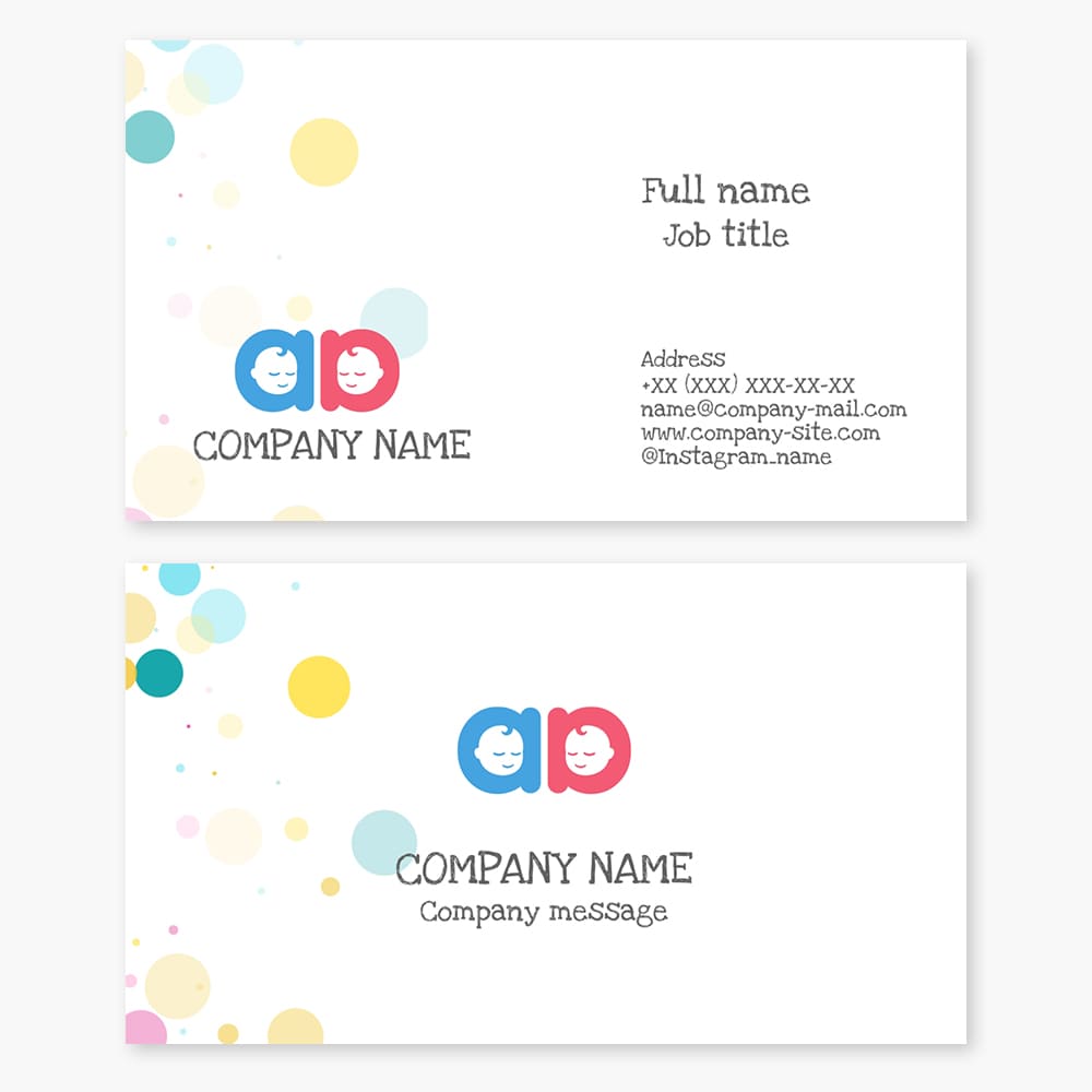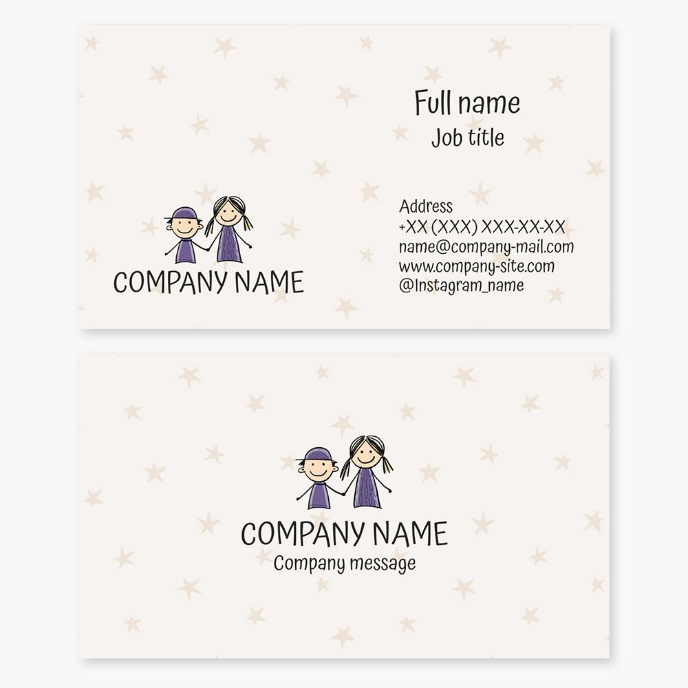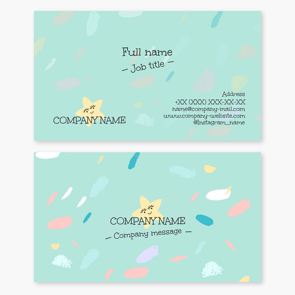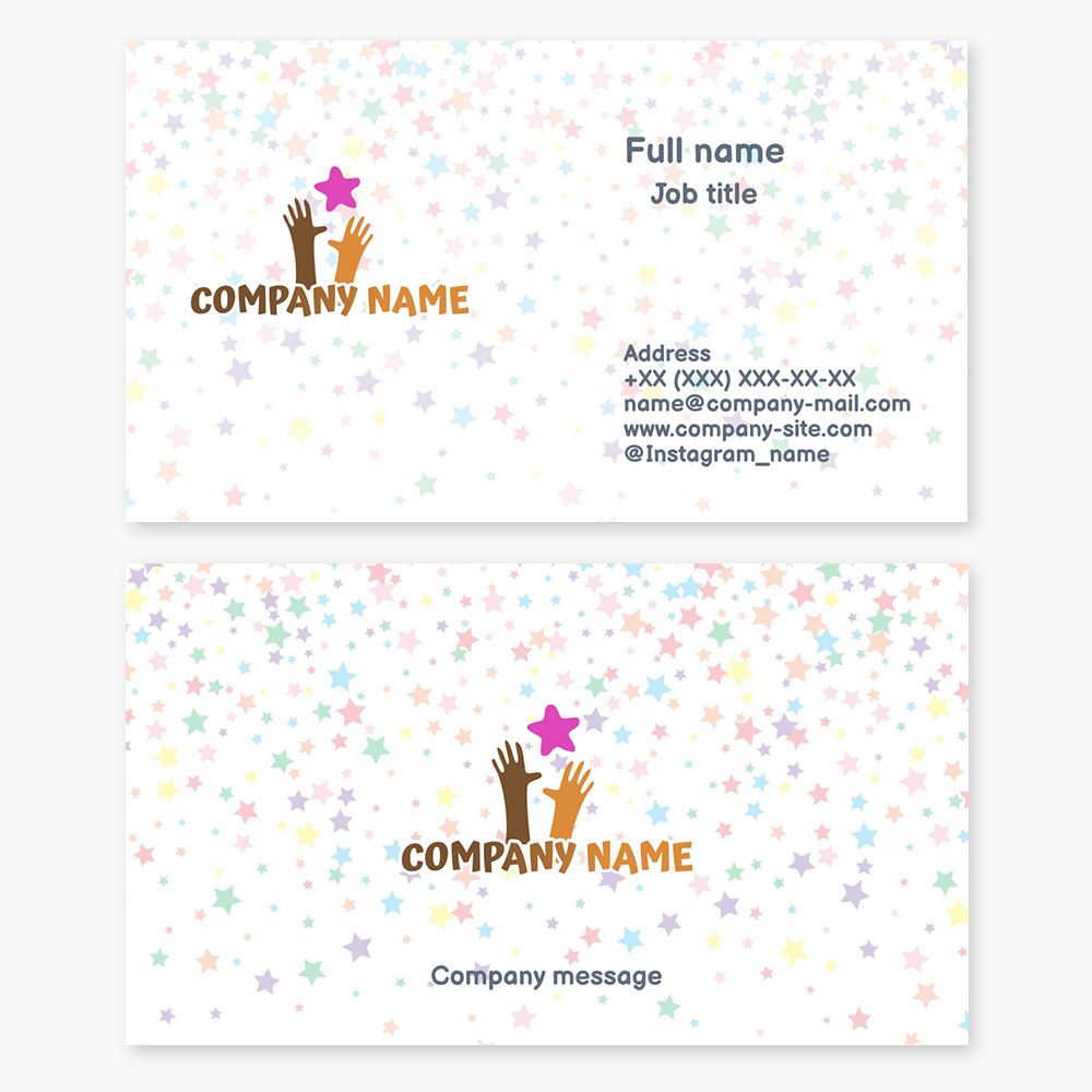 A children's-themed business card template. Star and paint strokes. Children's after-school development center.