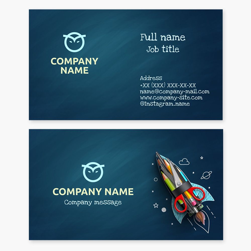Business card template. Education. Owl. Private school. Teacher, tutor. Stationery store.