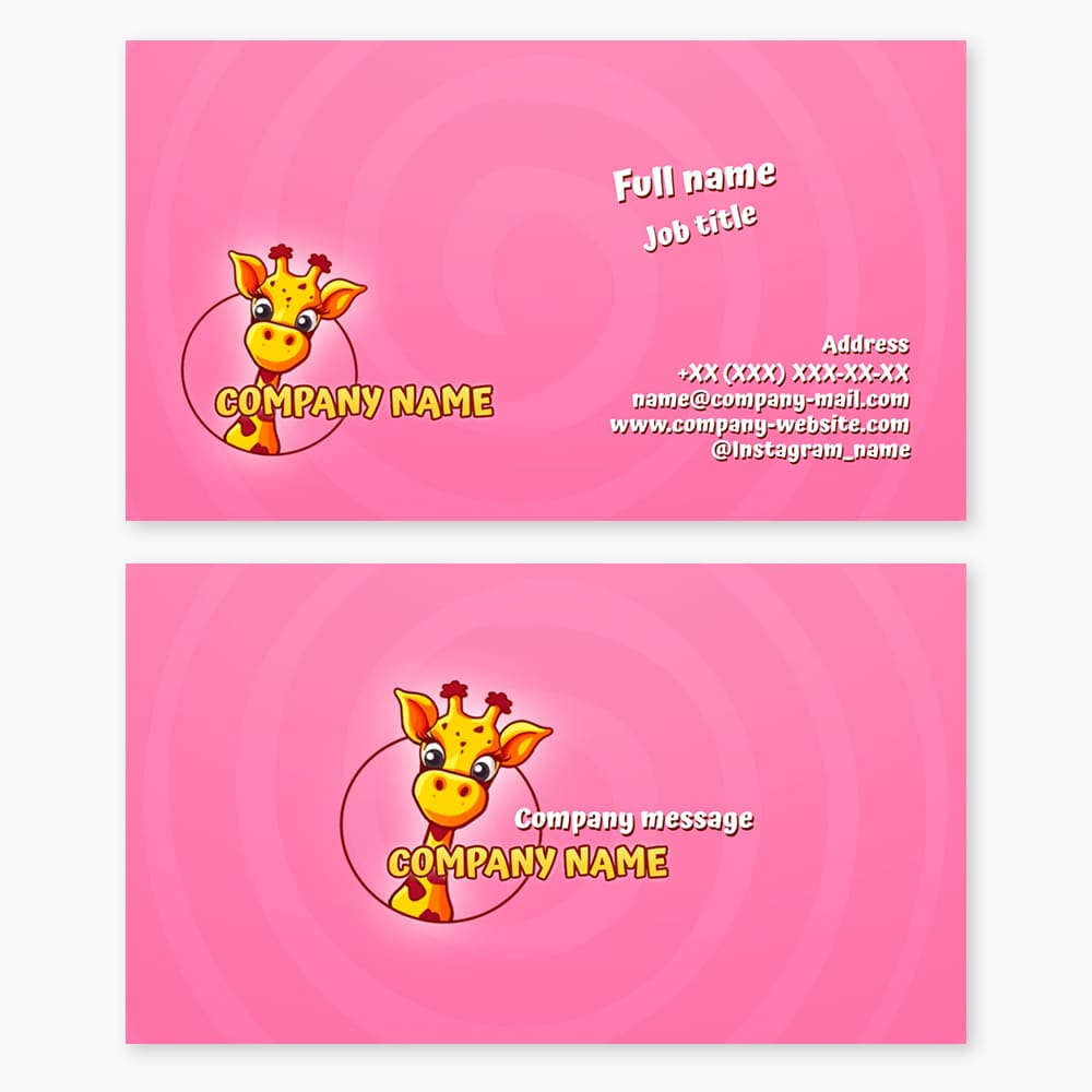 A business card template in a childish style. Abstract. Giraffe. Zoo. Letter O.