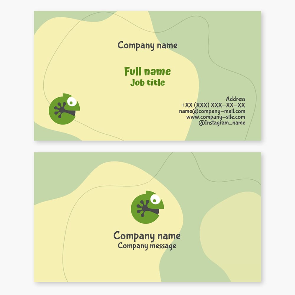 Business card template. Chameleon, a symbol of adaptation and flexibility. Children's brand. Extracurricular development center.
