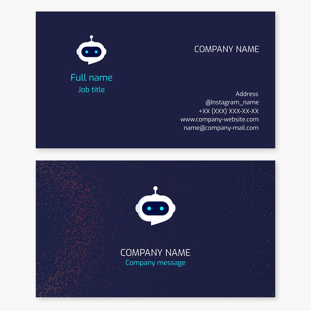 Robot face logo business card template. Robotics, Industrial automation, Production line design.