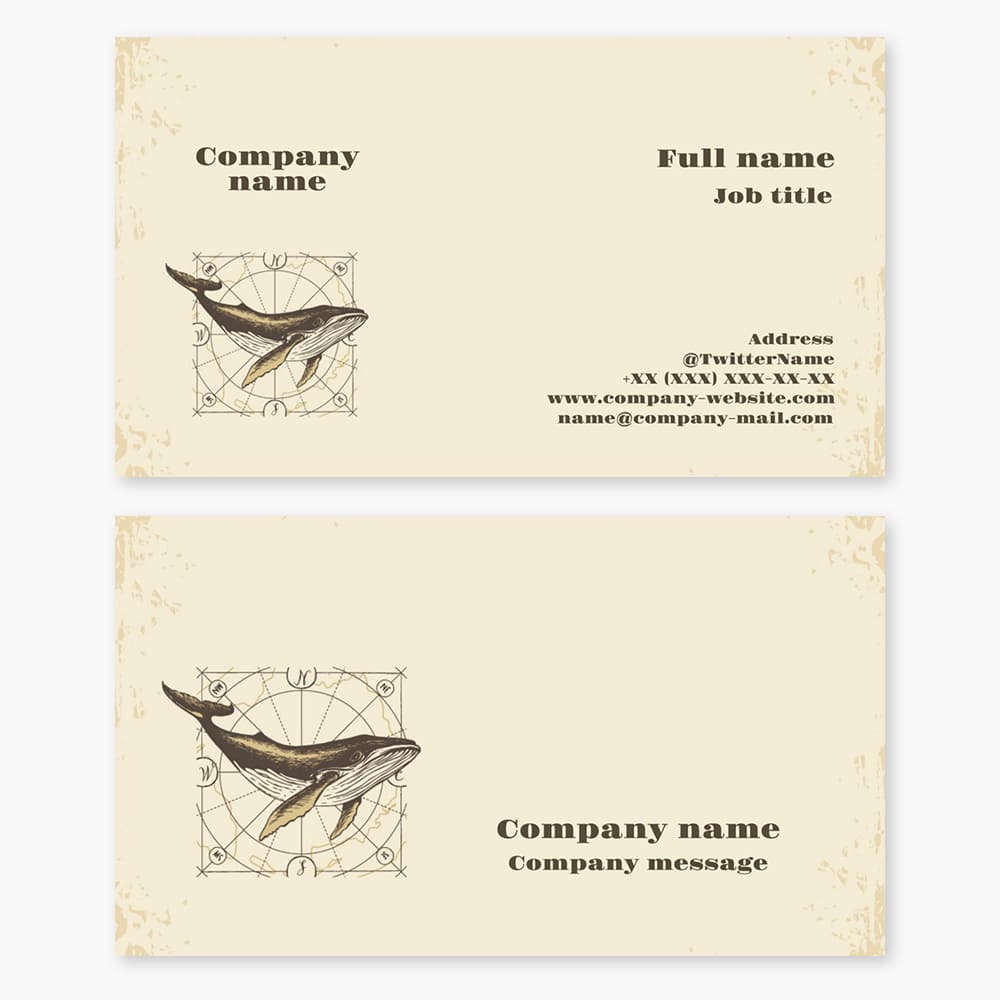 Vintage business card template with whale logo. Strength and leadership in business.