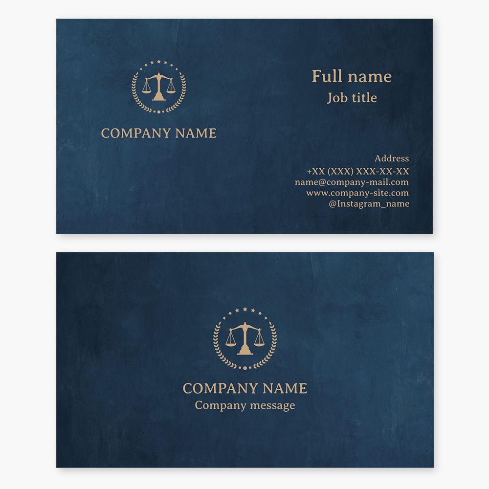 Business card template "Scales of Justice, Wreath, Stars." Law Firm.