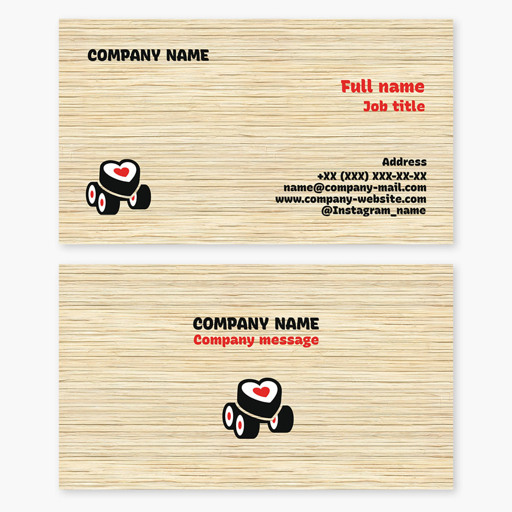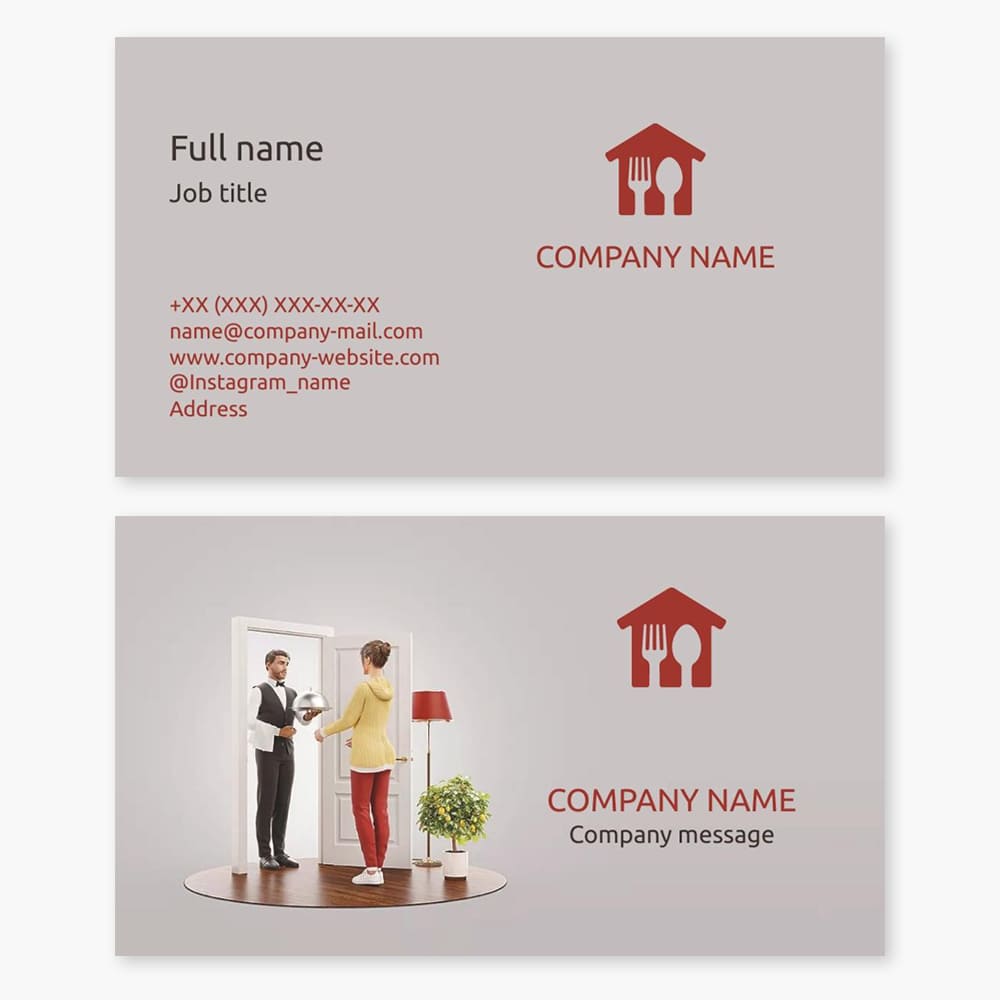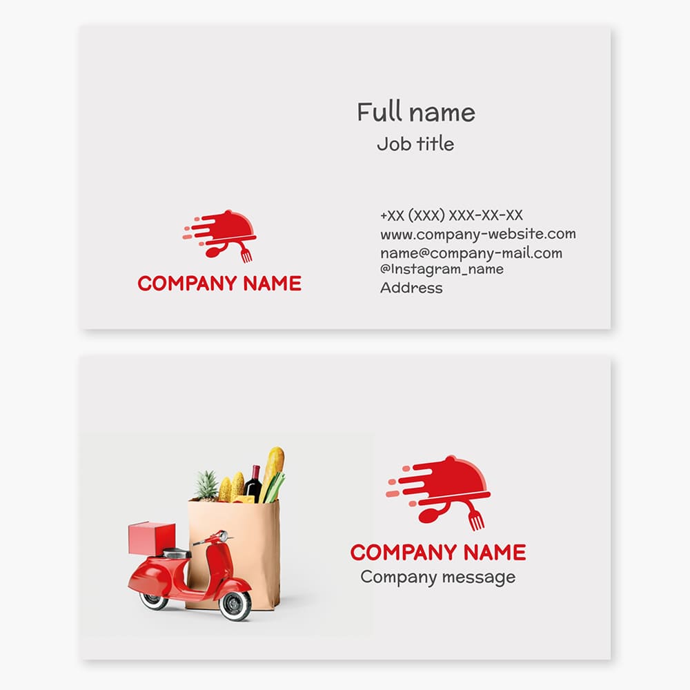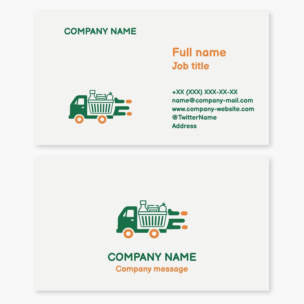 Business card template. Mobile canteen. Lunch delivery. Van, spoon, fork.