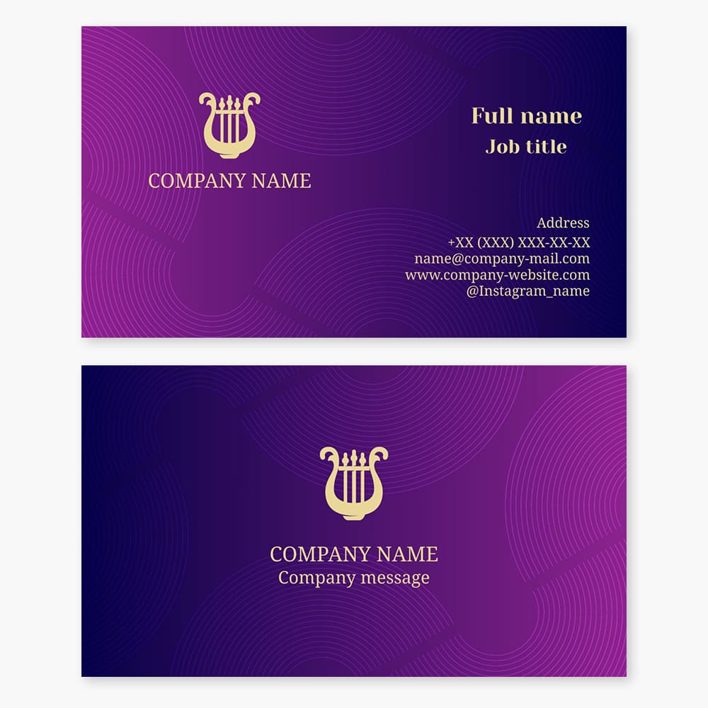 Business card template. Harp. Classical music.