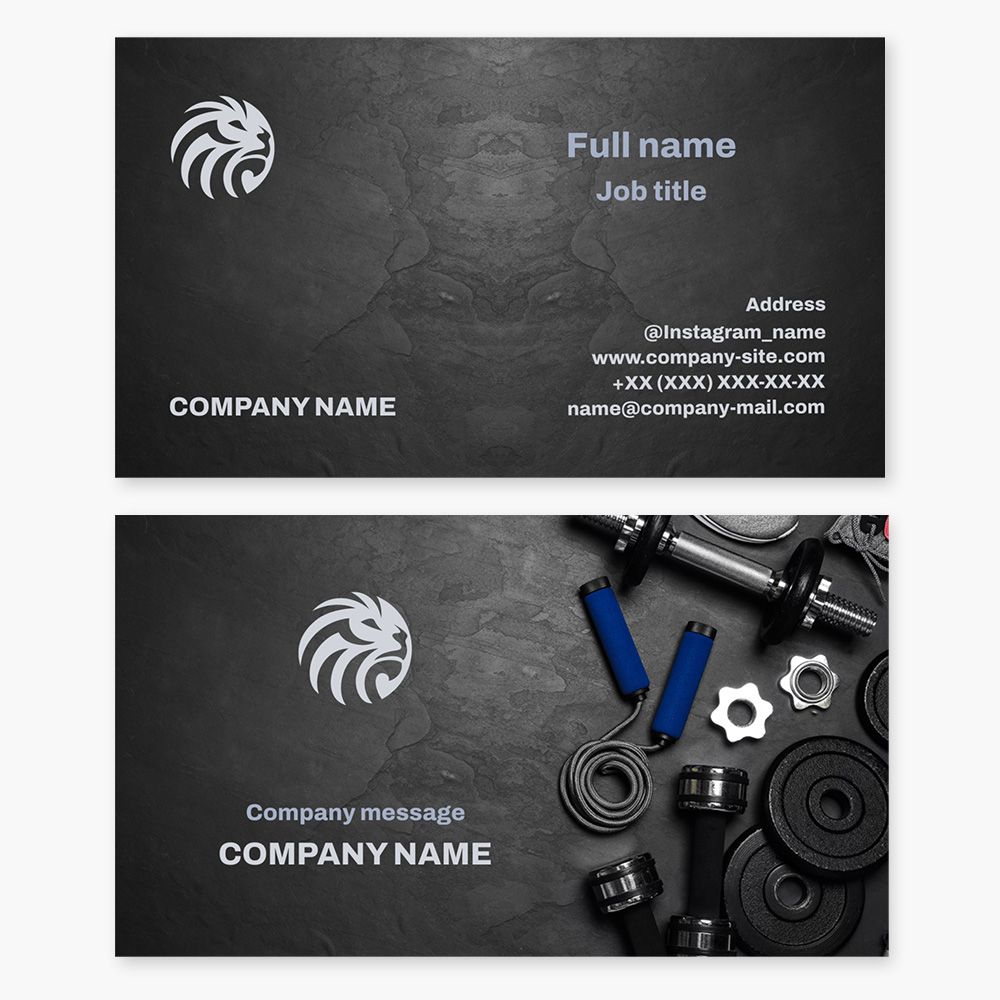 Fitness equipment business card template. Gym club. Sporting goods store.