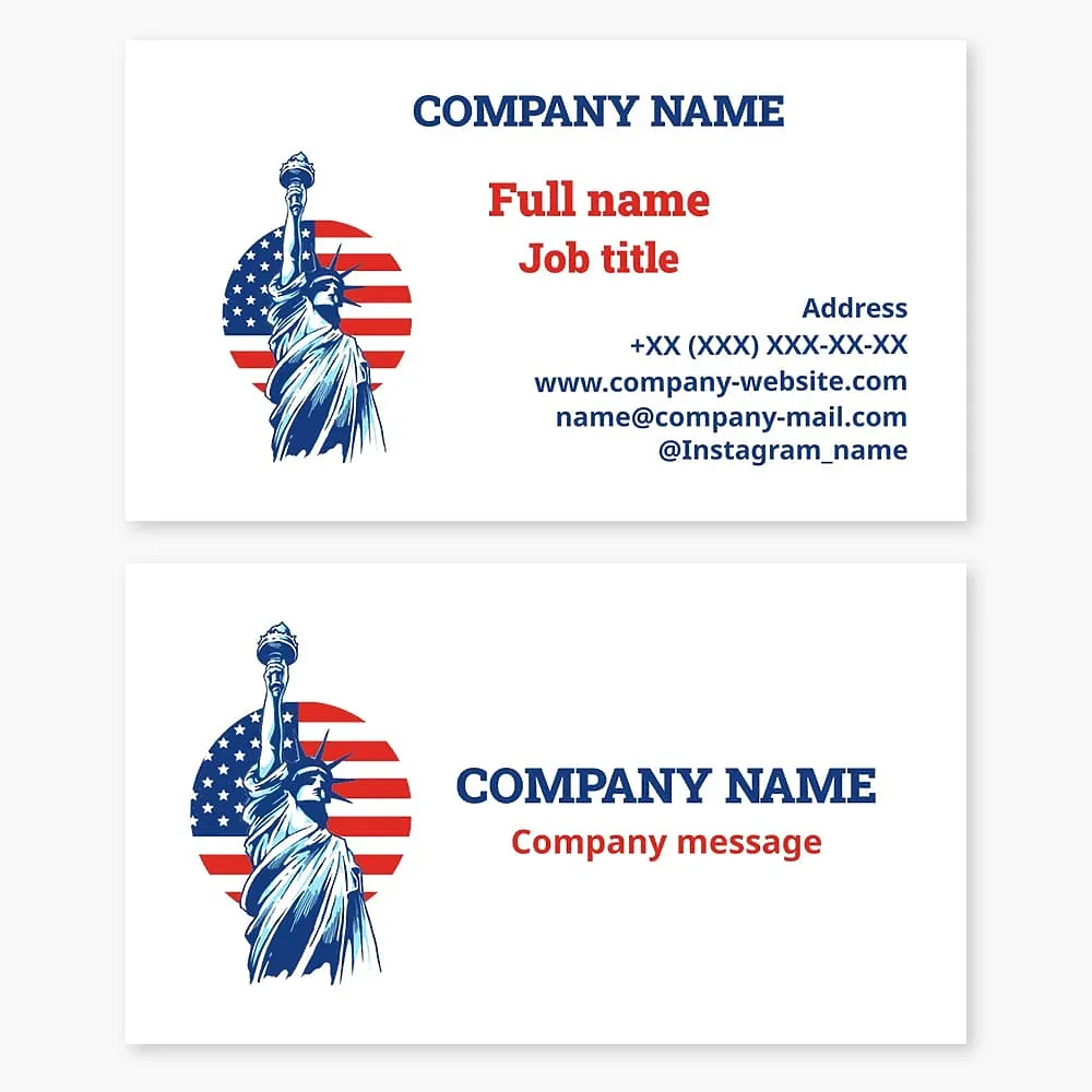 USA, Statue of Liberty, US flag, patriotism. Business card template