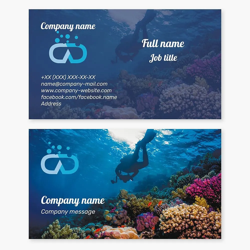 Business card template with the Coral Reef Water logo. Marine aquariums, oceanariums.