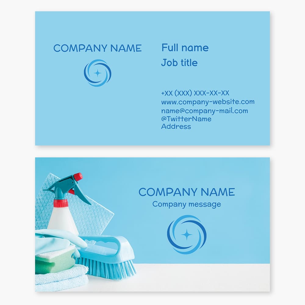 Business card template Cleaning company, cleaning, tools and materials for cleaning, Letter O