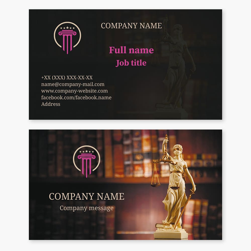 Business card template Law, court, lawyer, attorney, prosecutor, notary