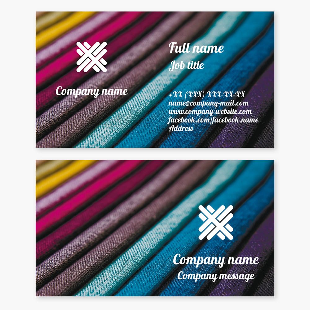 Design of a denim business card. Sewing denim pants, suits and work clothes from denim fabric.