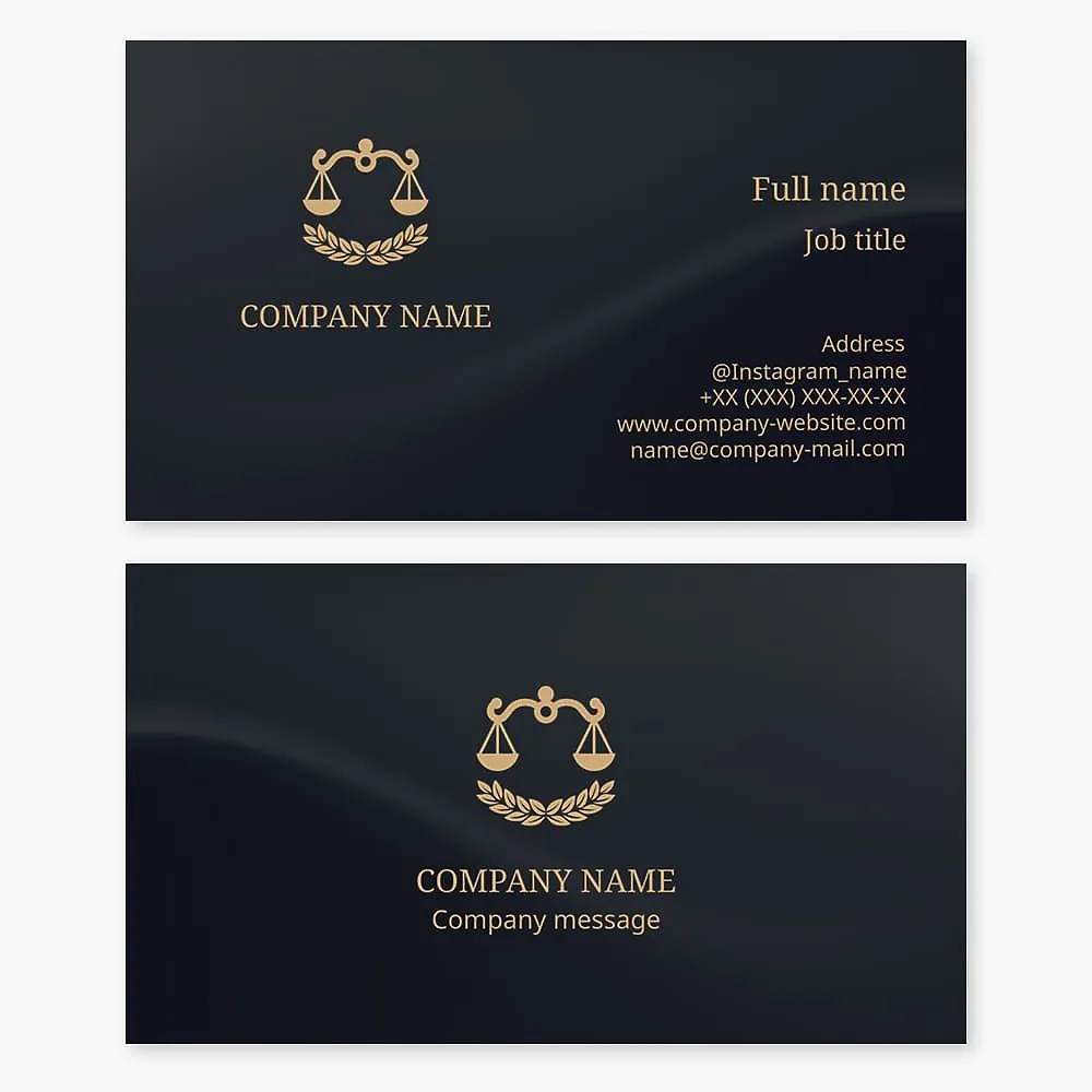 "Scales of Justice" business card template. Jurisprudence. Right. Advocacy.