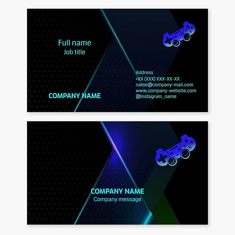 Business card template with a film logo. Film company. Event videography. Videographer, video editor. Film reel, record button, palm branch.