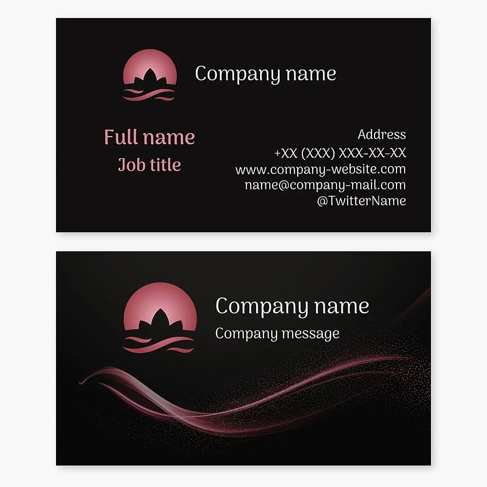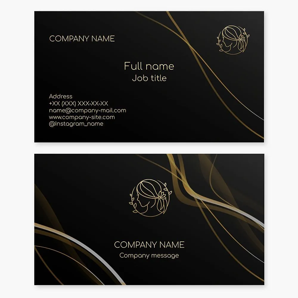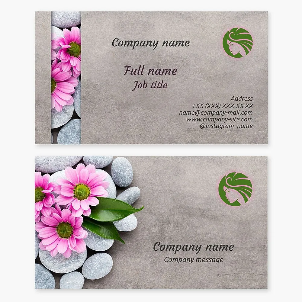 Beauty salon business card template. Stones, flowers, and a woman's head profile.