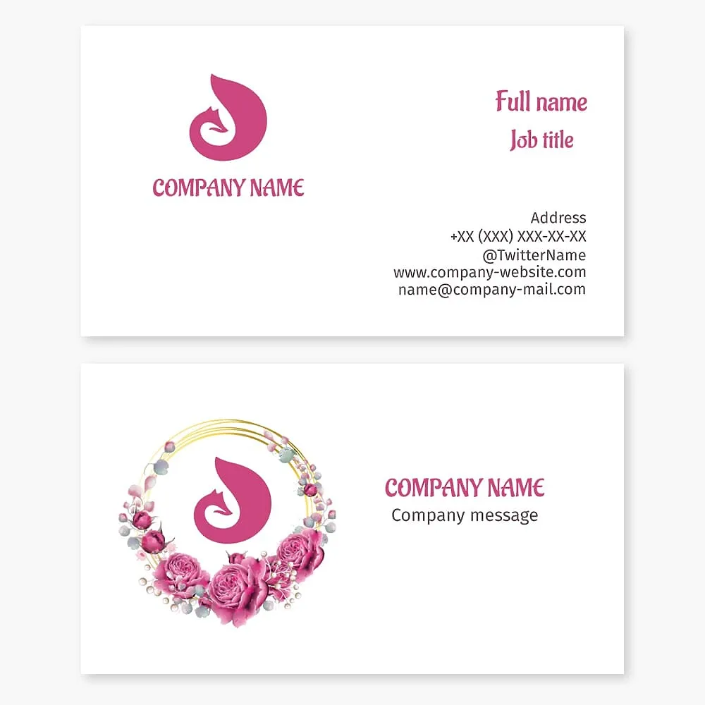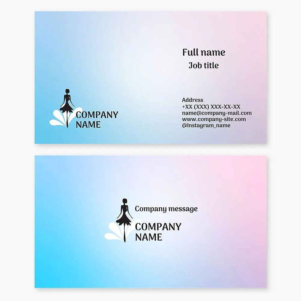 Fashion and Beauty Business Card Template. Flower, girl in a dress. Modeling agency. Fashion studio. Clothing repair shop. Sewing studio.