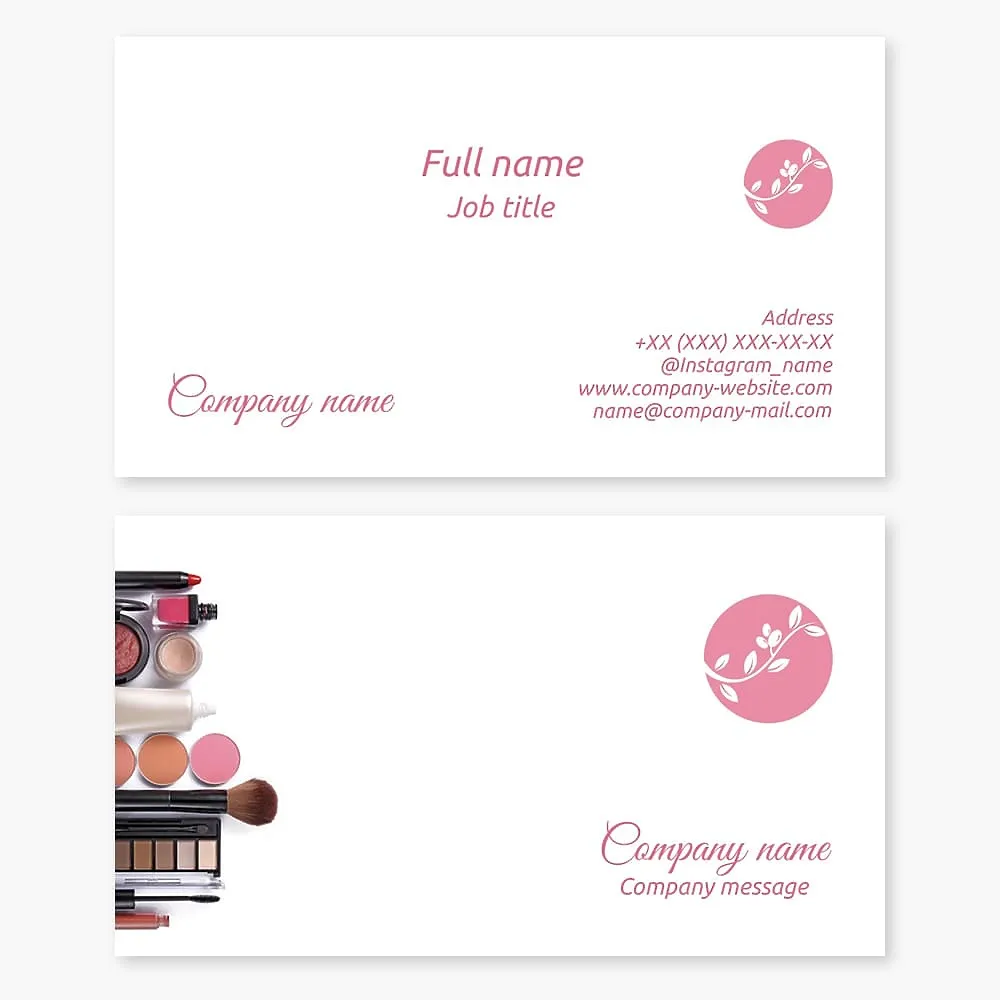 Pink Rose business card template. Beauty salon. Makeup studio. Letter O.