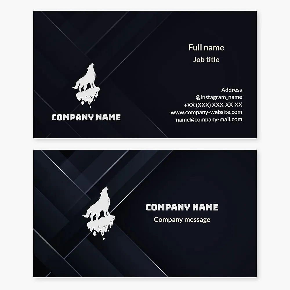 Business card template with the logo "Howling wolf on a rock". Symbol of strength, freedom, loyalty and independence.
