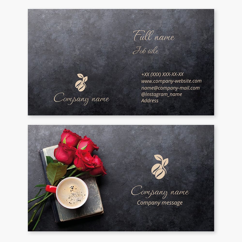 Coffee-themed business card template. Coffee bean supply. Coffee shop. Cafe.