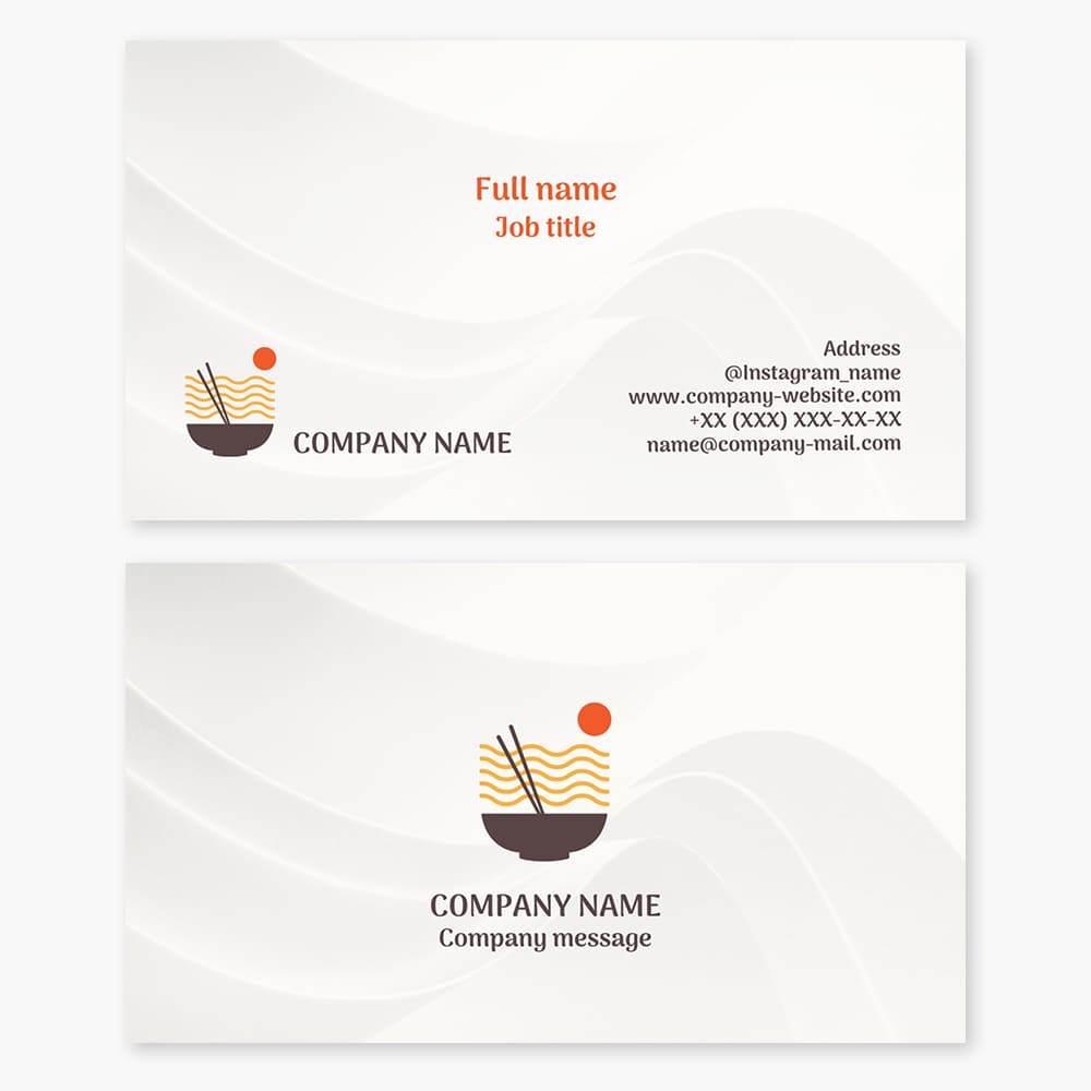 Business card template. Japanese noodles. Udon, ramen, soba, miyabi, harusame. Japanese cuisine restaurant, cafe.