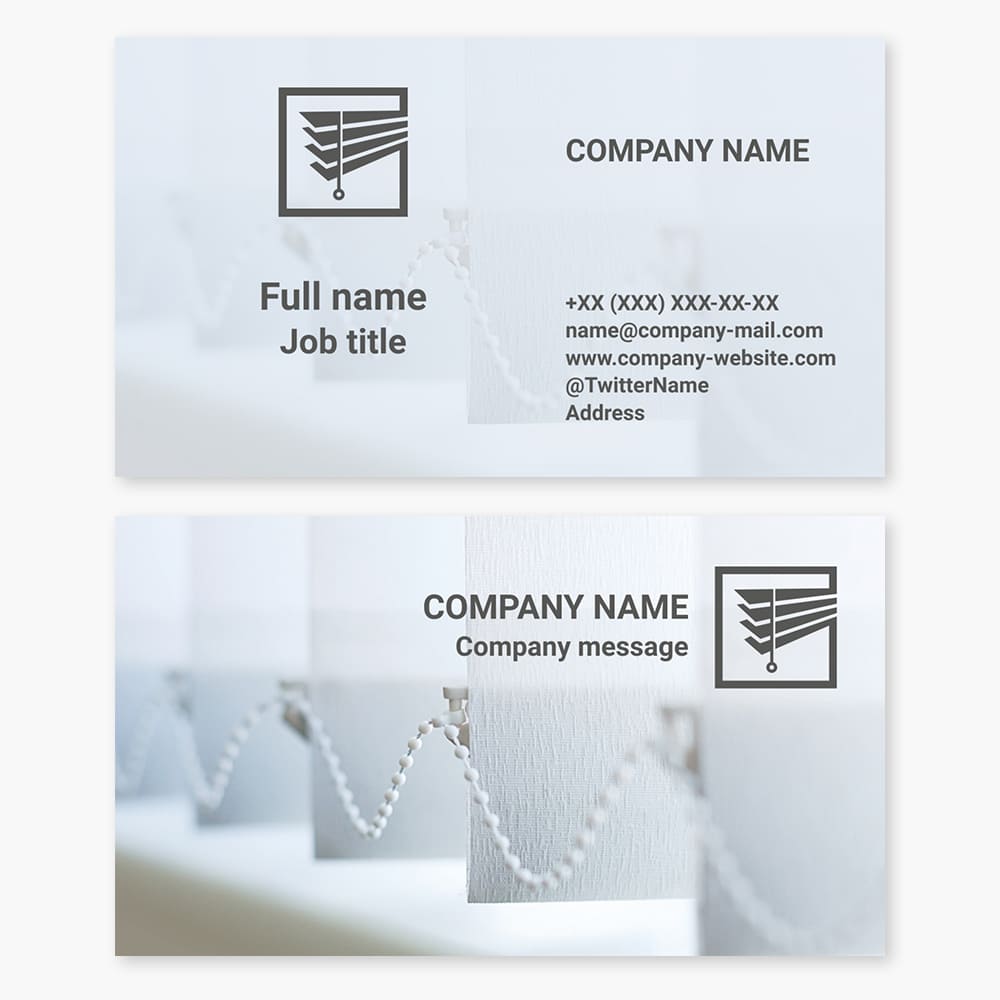 Interior designer and curtain decorator business card template. Sale, sewing, repair of curtains, tulle, drapes.