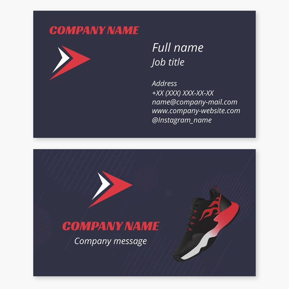 Sports, sports accessories and shoes. Business cards template