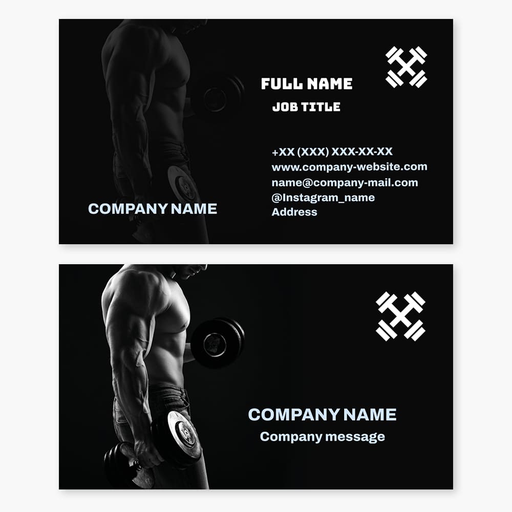 Business card template Fitness, bodybuilding, gym, sports center, weightlifting