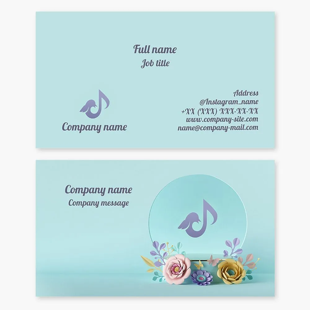 Creative business card template with Bird Music logo and balloon decorated with flowers. Music band. Festival organizer.