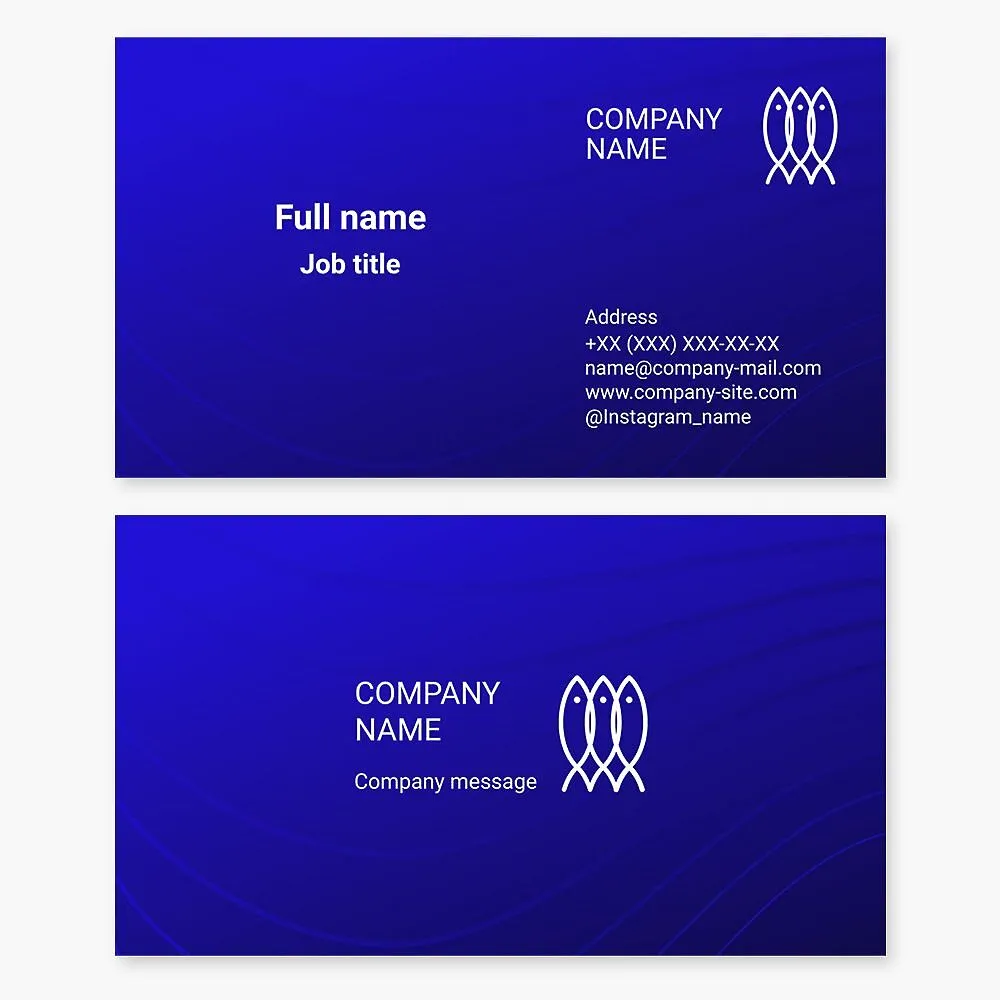 Three Fish. Waves Logo | Seafood Fishing and Wholesale | Bright Blue Business Card Template