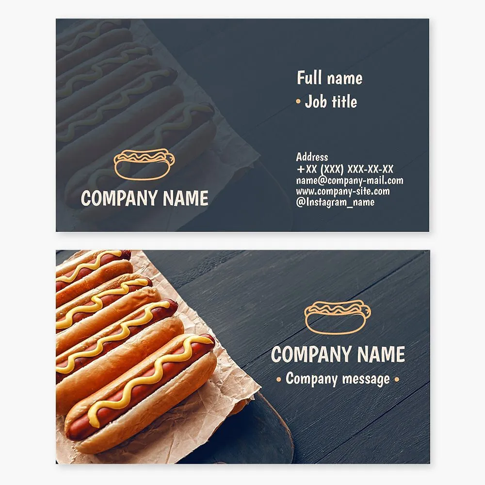 Business card template. Hot dog.