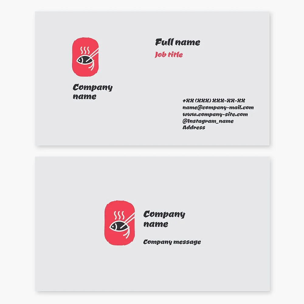Business card template. Sushi bar. Fish dish. Hashi sticks, kuaizi.