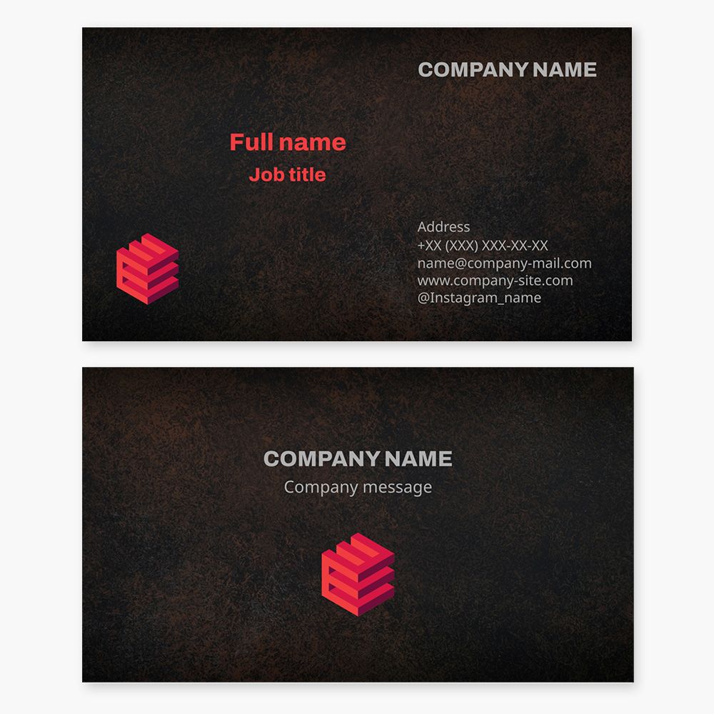 Business card template. Concrete products. Engineering and construction firm. 3D design. Multi-pass cube. Consulting services. Letter E.