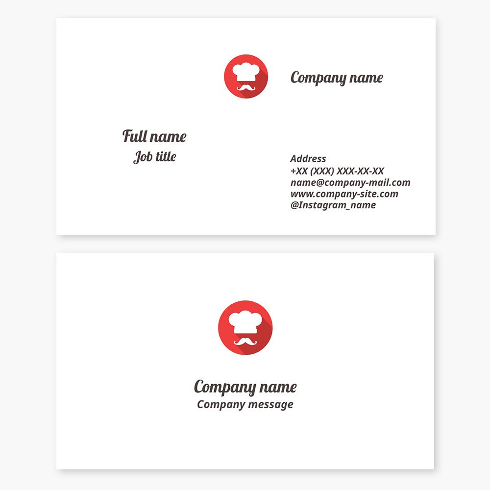 Business card template featuring a mustachioed chef or cook. Cafe, restaurant.
