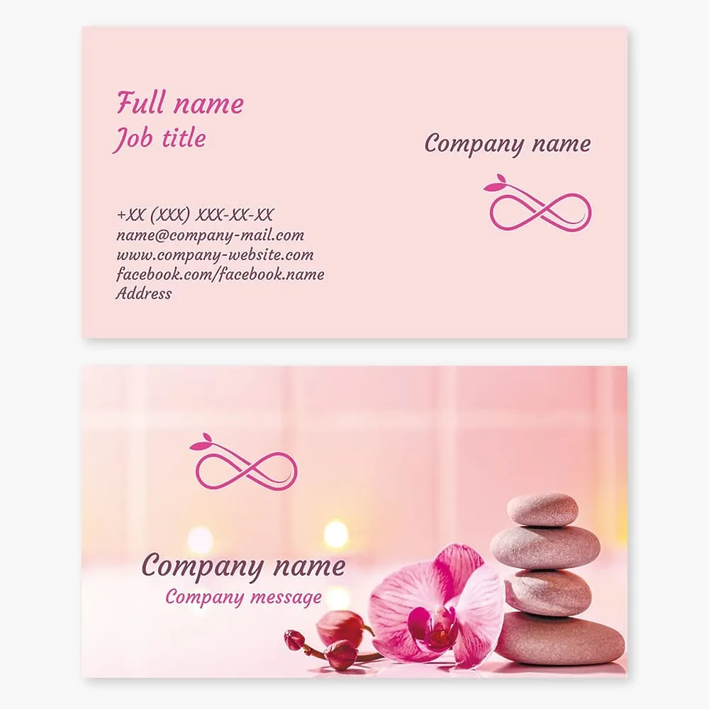 Business card template “Stacked stones and flowers. SPA services. SPA salon.”