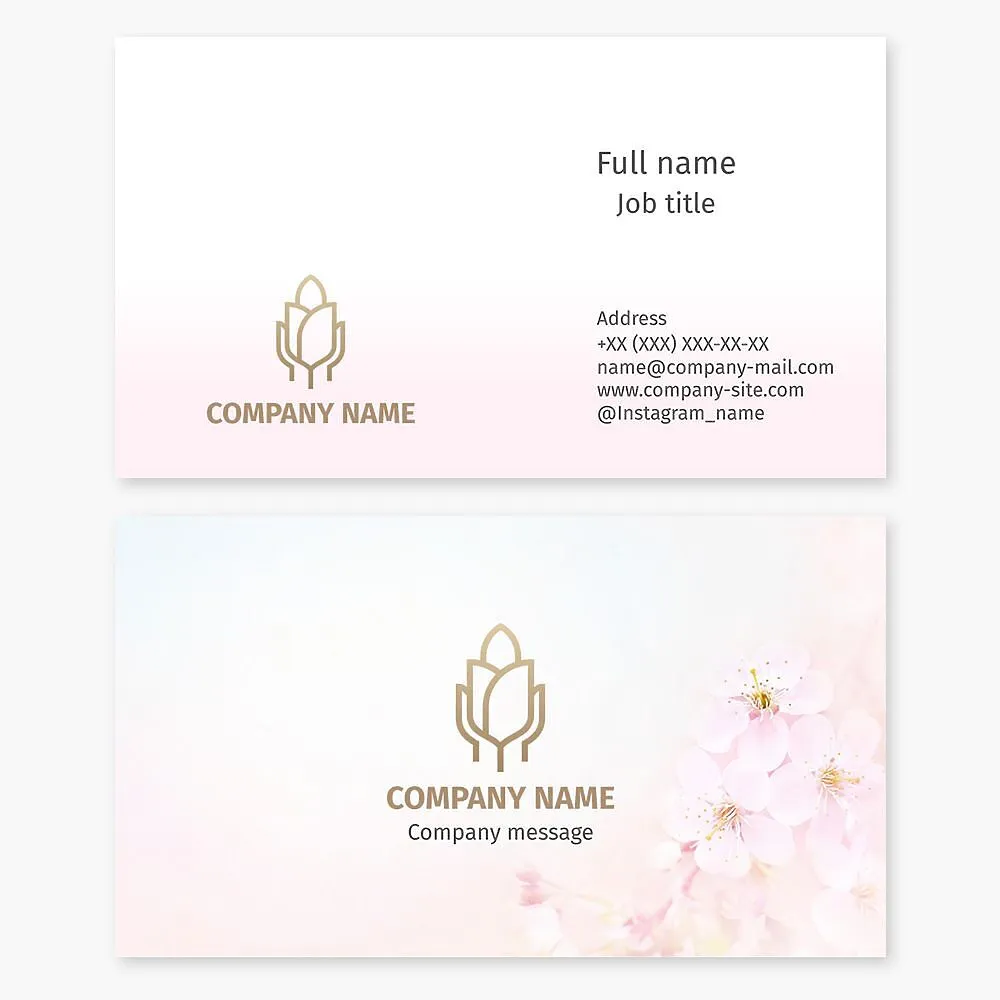 Business card template. Beauty salon. Flower shop. Seed store. Stylist, makeup artist. Flower. Tulip, rose. Letter O.