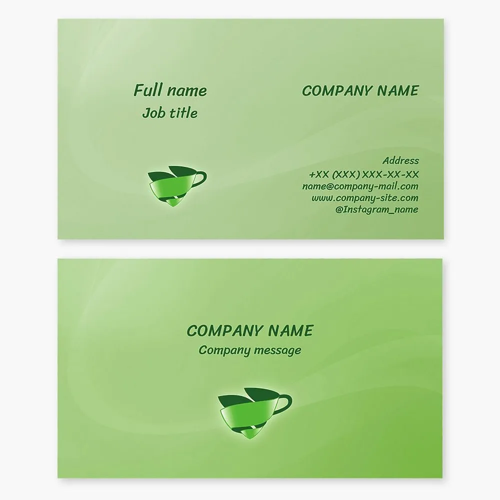 Universal green business card template. Tea. Tea supplies. Tea shop.