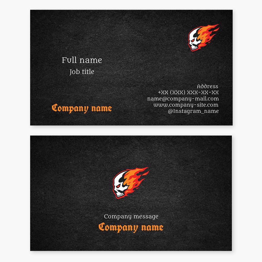 Skull and Flames business card template. Abstract. Tattoo parlor.