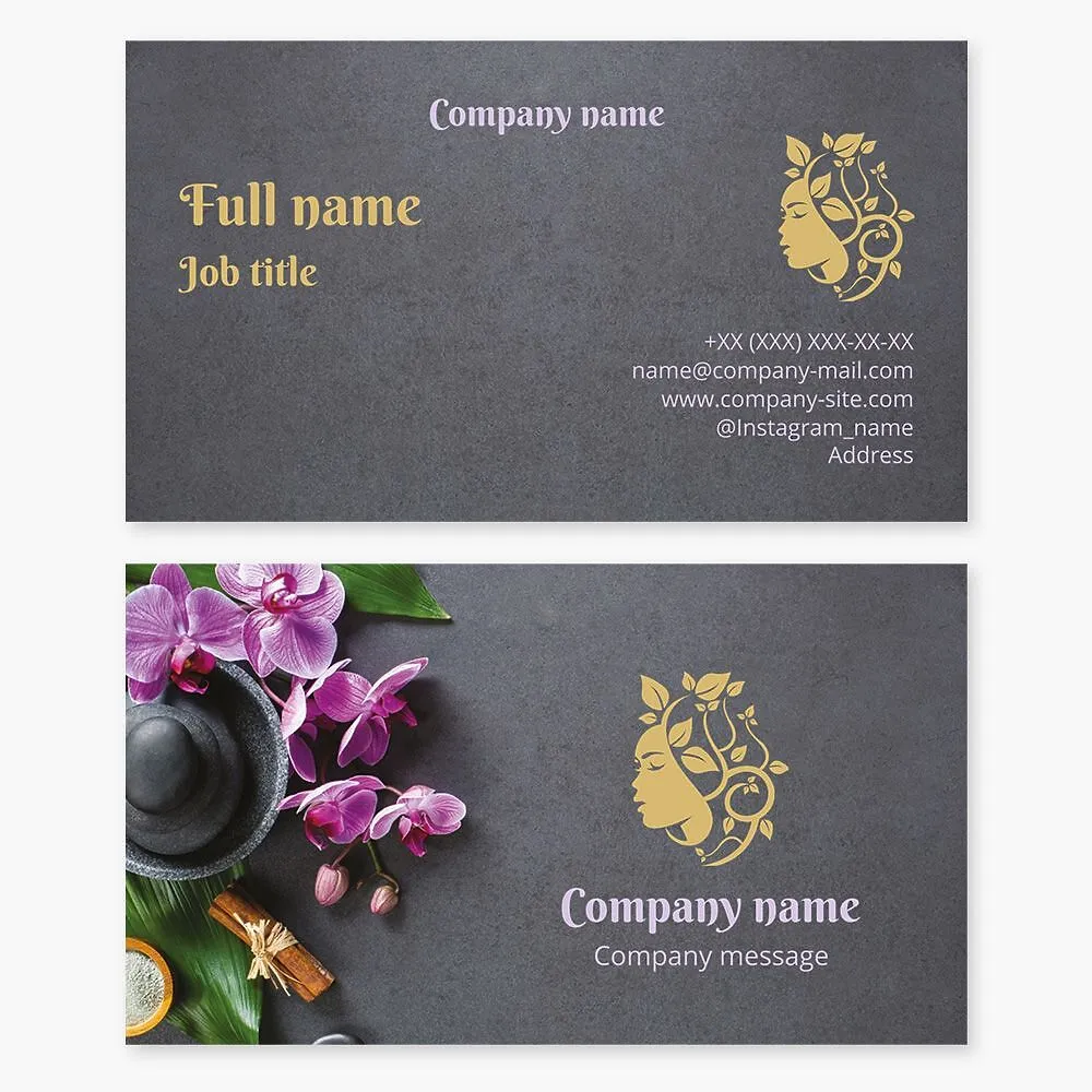 Business card template. Flower. Beauty. Powder, flower. Makeup artist. Beauty salon. Letter O.
