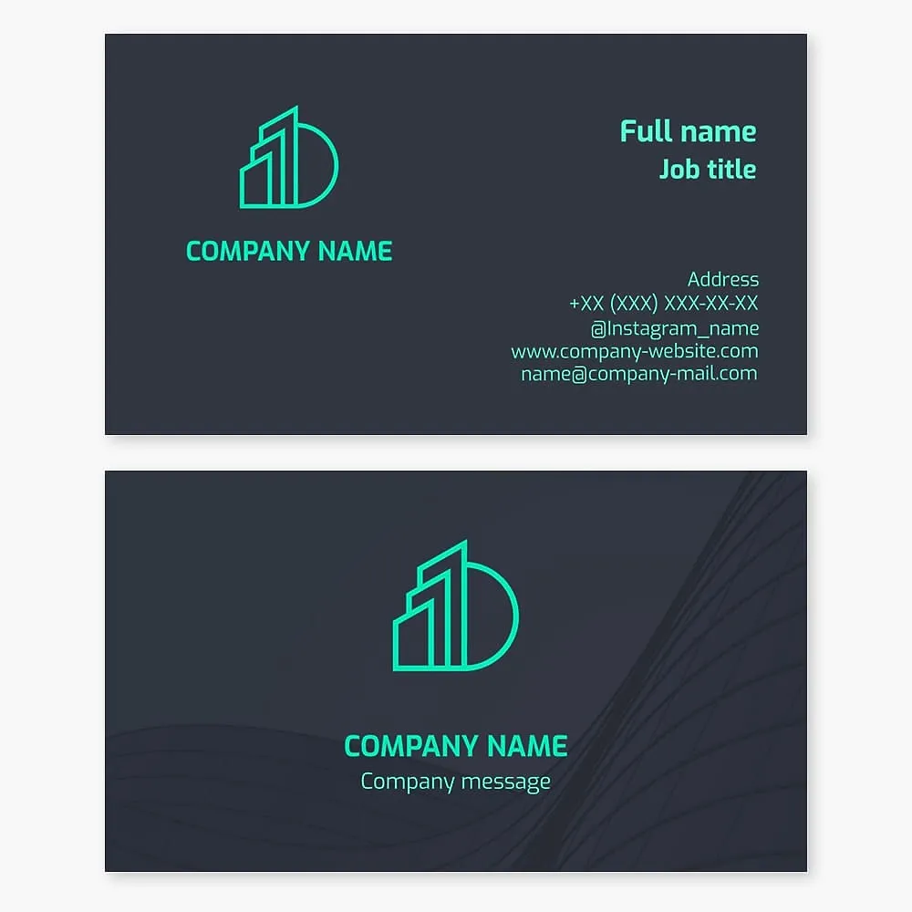 Business card template. Pencil, charts, multi-story buildings. Marketing agency. Architectural bureau.