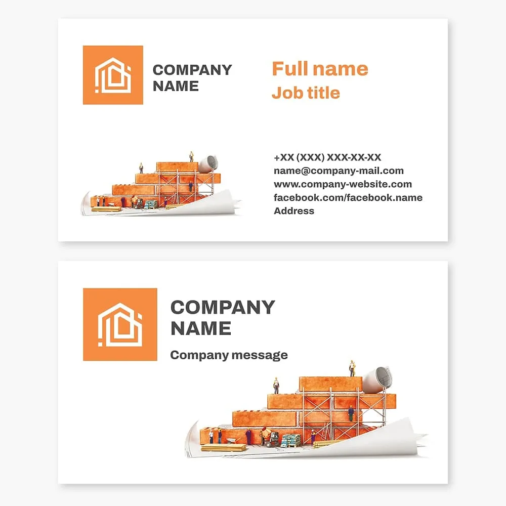 Business card template for "Brickwork and Plastering." Mason, builder, painter and plasterer.