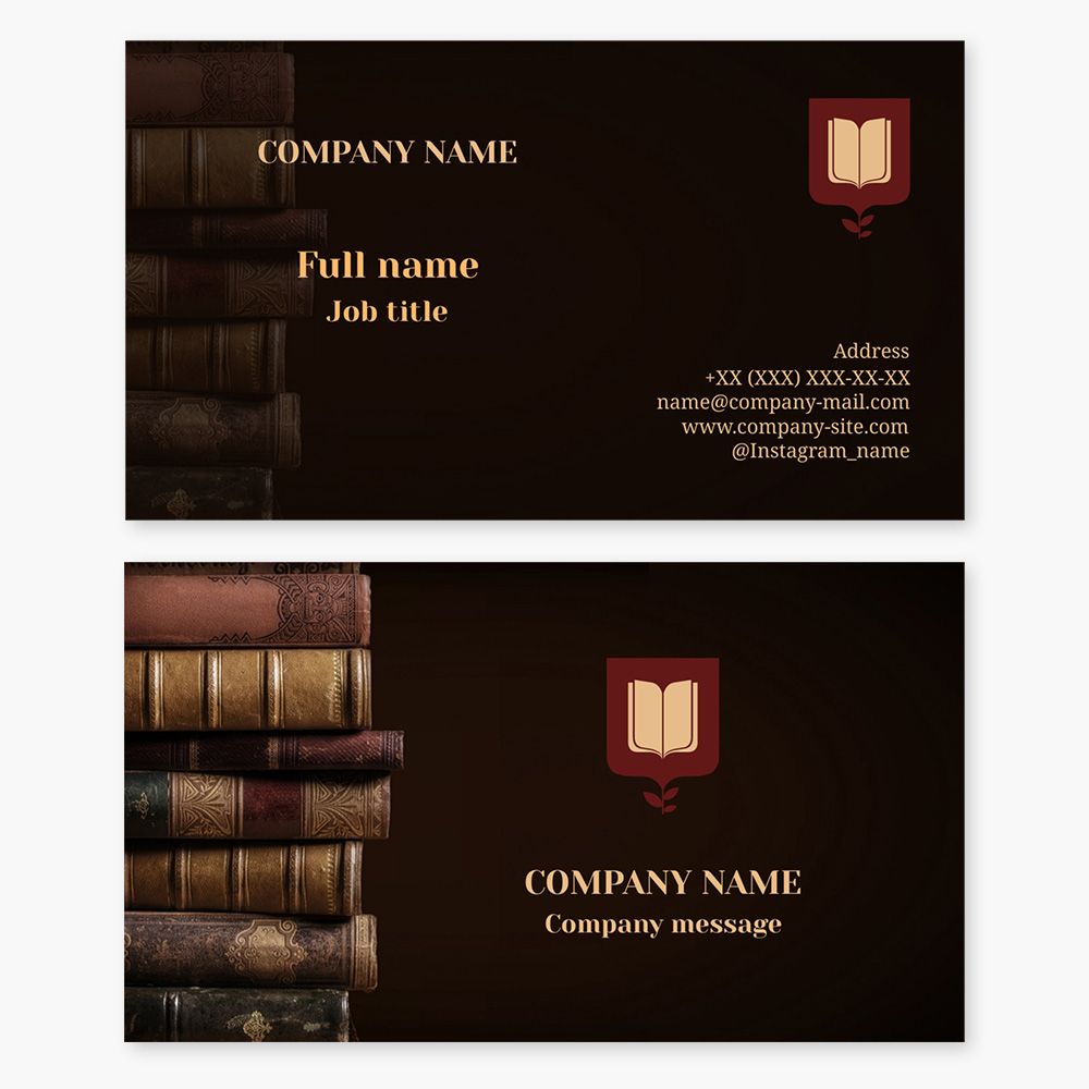 Business card template. Library. Book repair. Shield, book.